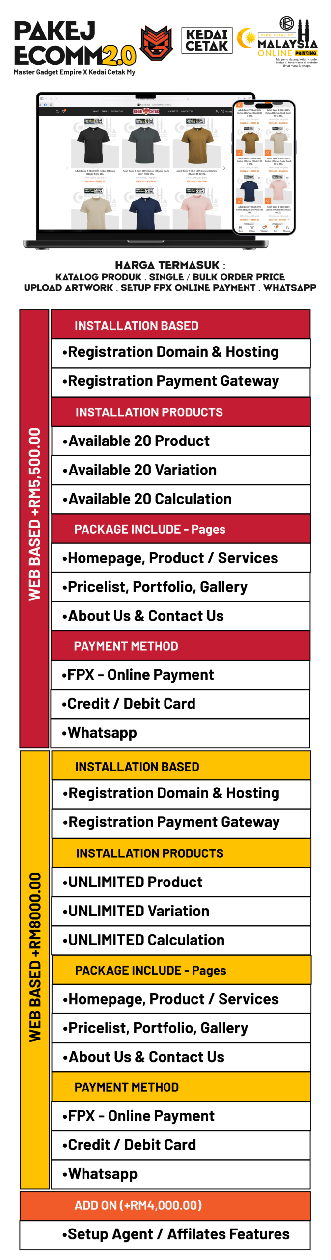 Apa yang anda akan dapat dalam pakej ini adalah satu setup yang lengkap dimana dengan wujudnya website ini sebagai sistem untuk membantu dalam perniagaan printing anda.